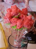 Trouxeron un ramo de flores feito con golosinas.